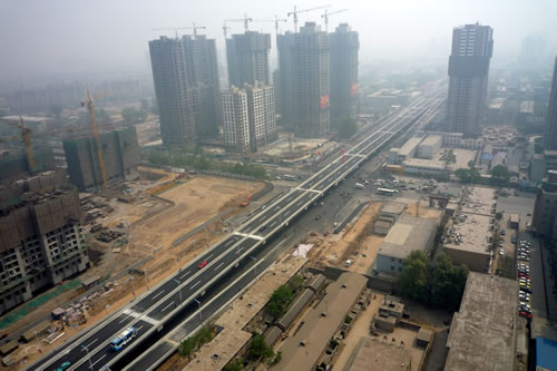 | 和平路是石家莊市北翼東西向的一條城市主干道,是石家莊市總體規(guī)劃中的“四橫”之一。和平路跨線橋(紅軍街——棉一立交橋)工程始于紅軍大街,跨越中華大街、九中街、北新街、車輛廠前街、京廣線、勝利大街、平安大街、長征街后與棉一立交橋連接,高架橋全長3616米。 由我公司承建的一標段西起紅軍大街,東止于北新街東220米,總長1621.267m,由高架橋梁、道路、排水管道、道路照明等工程項目組成,是全線三個標段中工程量最大的標段。2009年4月30日主橋主路正式通車,比預定工期提前了10個月。 “和平路跨線橋工程的建成通車,標志著省會城市基礎(chǔ)設(shè)施建設(shè)翻開嶄新的一頁,對完善市區(qū)路網(wǎng)結(jié)構(gòu)和改善市民出行環(huán)境、進一步改善城市面貌意義重大。”---燕趙晚報 2009年5月1日 頭版